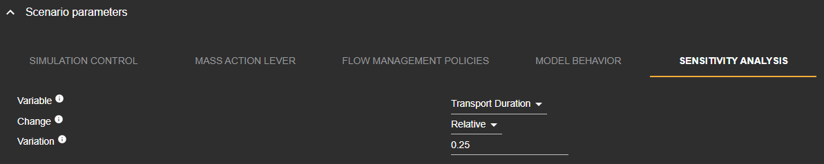 Sensitivity analysis’ scenario parameters