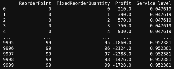Previously, we showed how profit can be optimized by adjusting the parameters controlling the stock replenishment policy of Retailer 1’s inventory: the reorder point, defining which stock level threshold triggers a new order, and the associated reorder quantity.